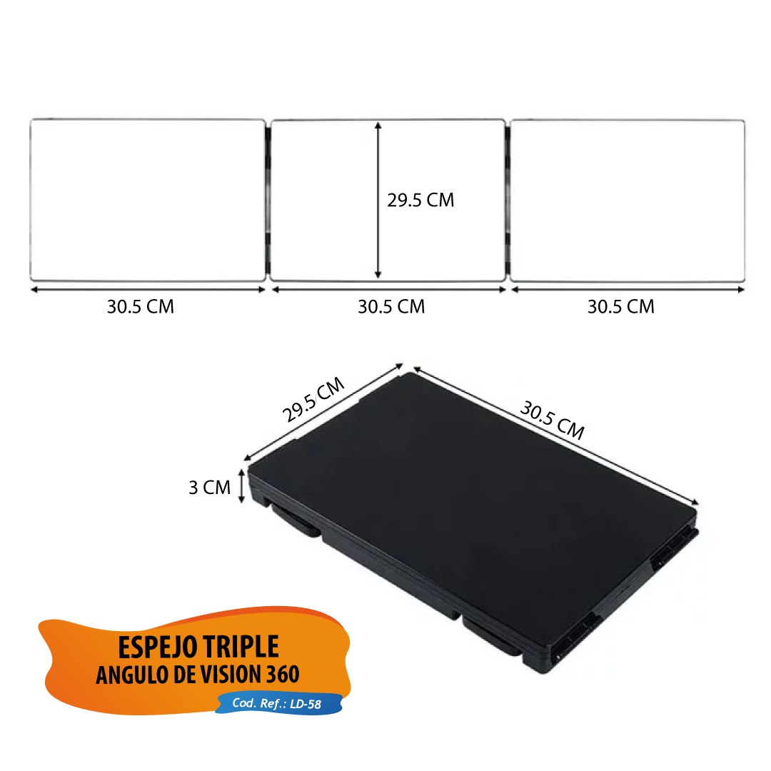 Espejo Triple con Angulo de Vision 360